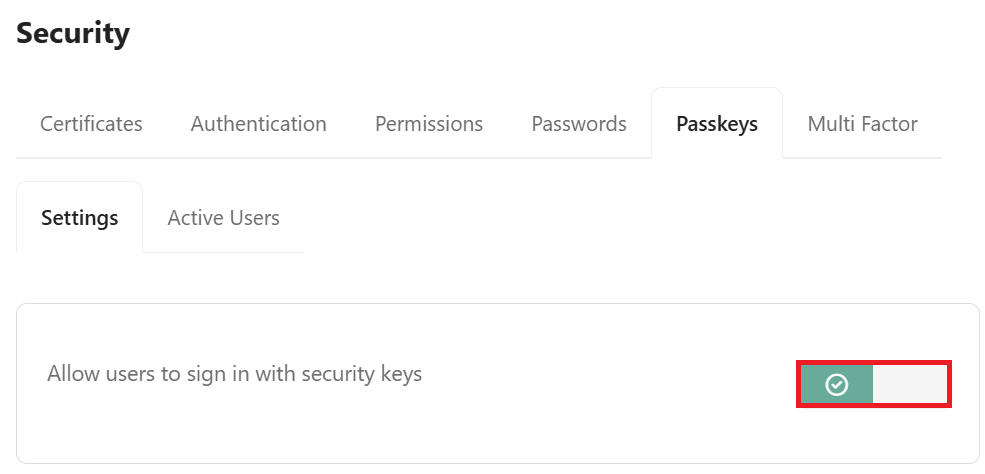 2. Enable Passkey sign-in by toggling on ‘Allow users to sign in with security keys‘