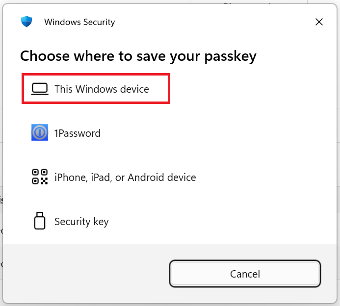 In the Windows app sign in dialog, click Sign in with a Passkey