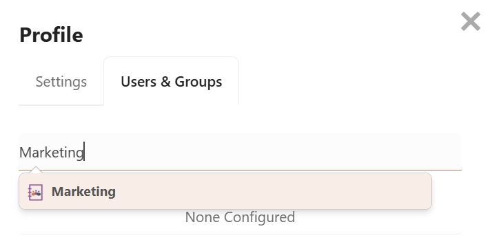 6. Click the Users & Groups tab and search for the User or Group that you wish to assign the profile. In the example below an Active Directory group ‘Marketing’ is being used.