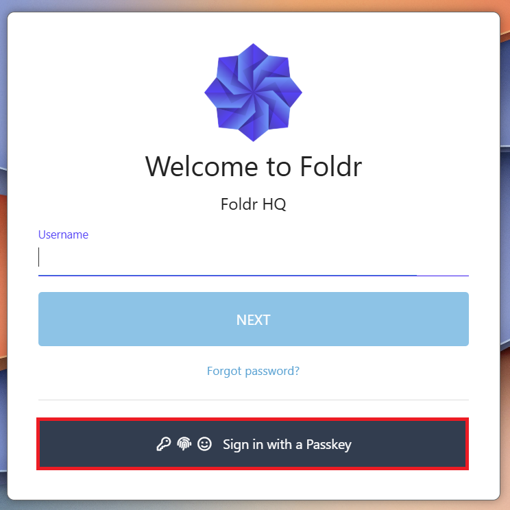 Foldr supports Passkeys (formerly known as Webauthn) to allow users to sign in to the Foldr web and Windows desktop app.