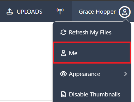 A user can manage their registered security keys in the web app’s Me menu screen.