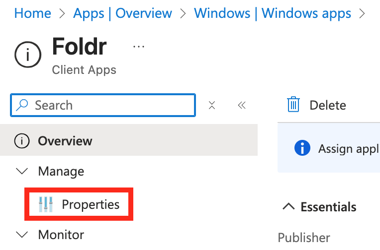 1.  In the Intune admin center, navigate to Apps > Windows apps and edit the existing Foldr ‘Line of Business’ app