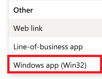 5.  Select Windows app (Win32) from the App type drop-down menu