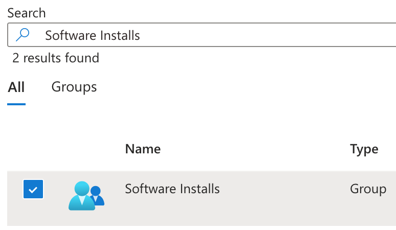 21.  On the Assignments tab, assign the app to a suitable group of devices using the Required section.  In the example below, the app is being deployed to the Software Installs security group, clicking + Add group