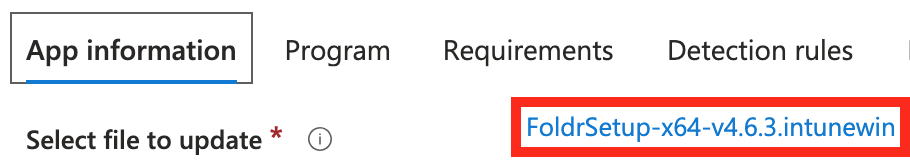 4. Select the file to update (existing FoldrSetup .intunewin)