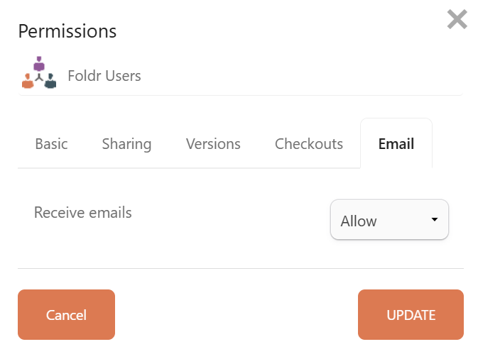 Foldr Settings > Files & Storage > Edit Storage > Access tab > Permissions: